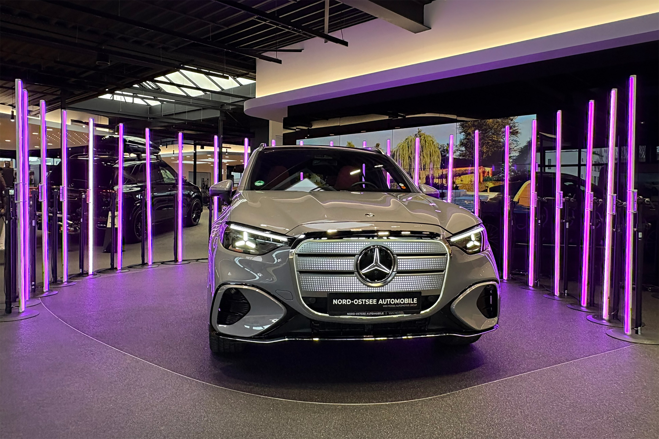 Elegant inszenierte Fahrzeugpräsentation des neuen Mercedes-Benz GLC